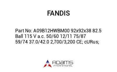 FANDIS A09B12HWBM00 92x92x38 82.5 Ball 115 V a.c. 50/60 12/11 75/87 59/74 37.0/42.0 2,700/3,200 CE; cURus; USA Sales